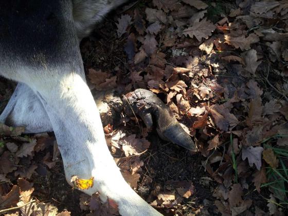 Zwierzę zaplątało się w rozstawioną przez kłusownika pułapkę wykonaną z plecionej stalowej linki. Próby uwolnienia zaplątanej kończyny zakończyły się zerwaniem wnyk i uszkodzeniem nogi. Przyczyną śmierci tego osobnika było prawdopodobnie wdanie się zakażenia.